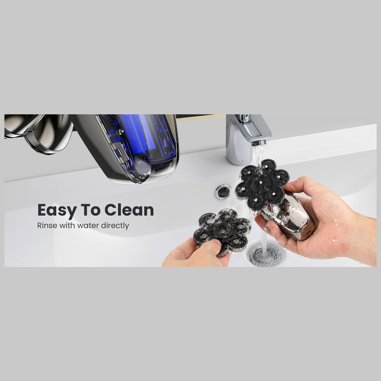 | ویژگی ها | تیغه دوحلقهای برای پوشش بیشتر، سازه شناور با تطابق کامل، جداسازی مغناطیسی، کاهش لرزش، ضدآب و شستوشوی کامل |
