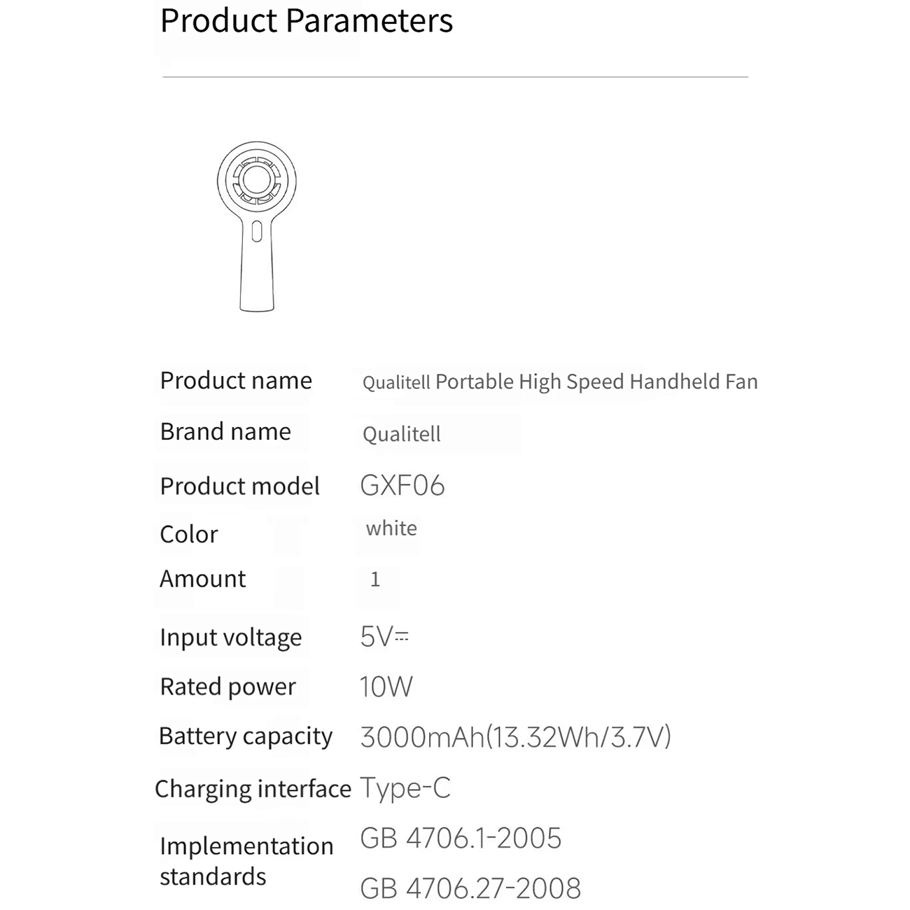 Qualitell Y3 High-Wind Handheld Mini Fan GXF06