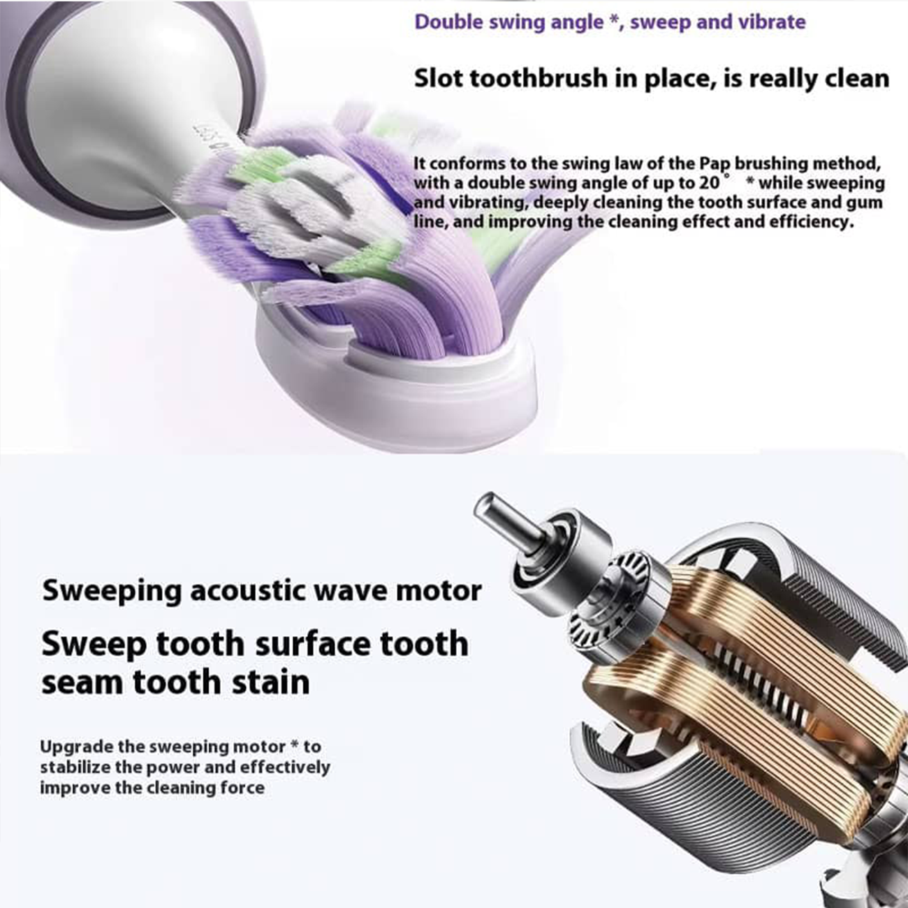 | کاهش زاوایه و افزایش قدرت برای تمیز کردن نقاط مورد نظر دندان | |