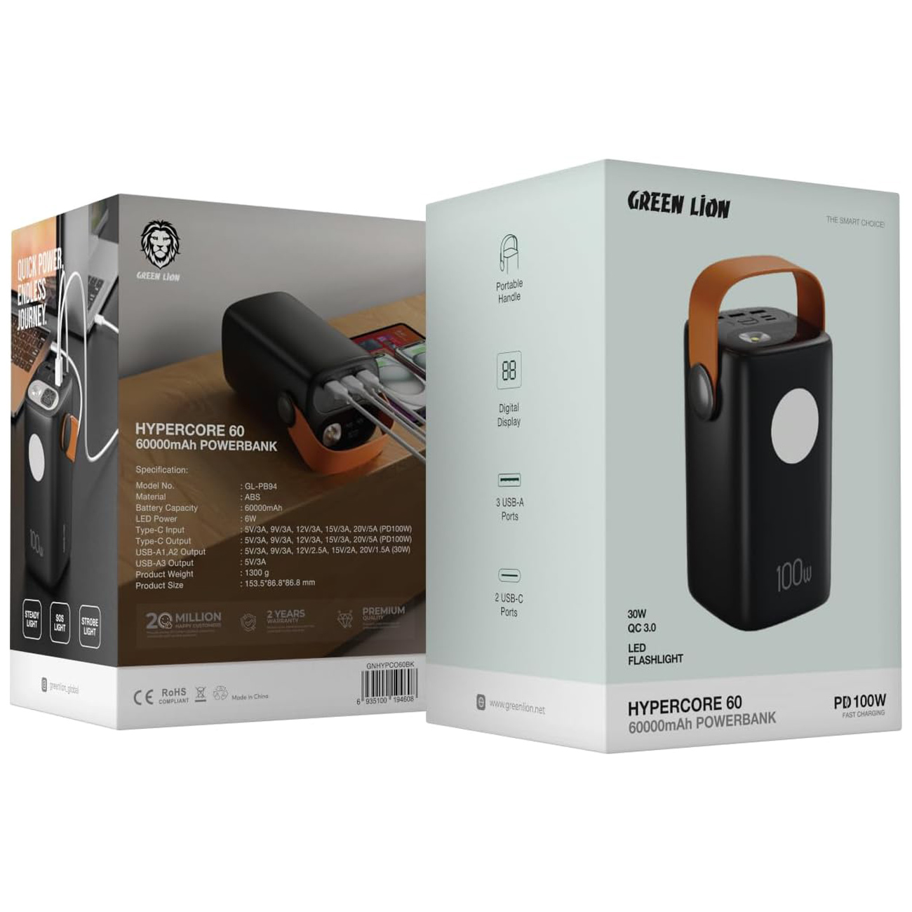 Green Lion Hyper Core 60 Power Bank 60000mAh GNHYPCO60BK/GL-PB94