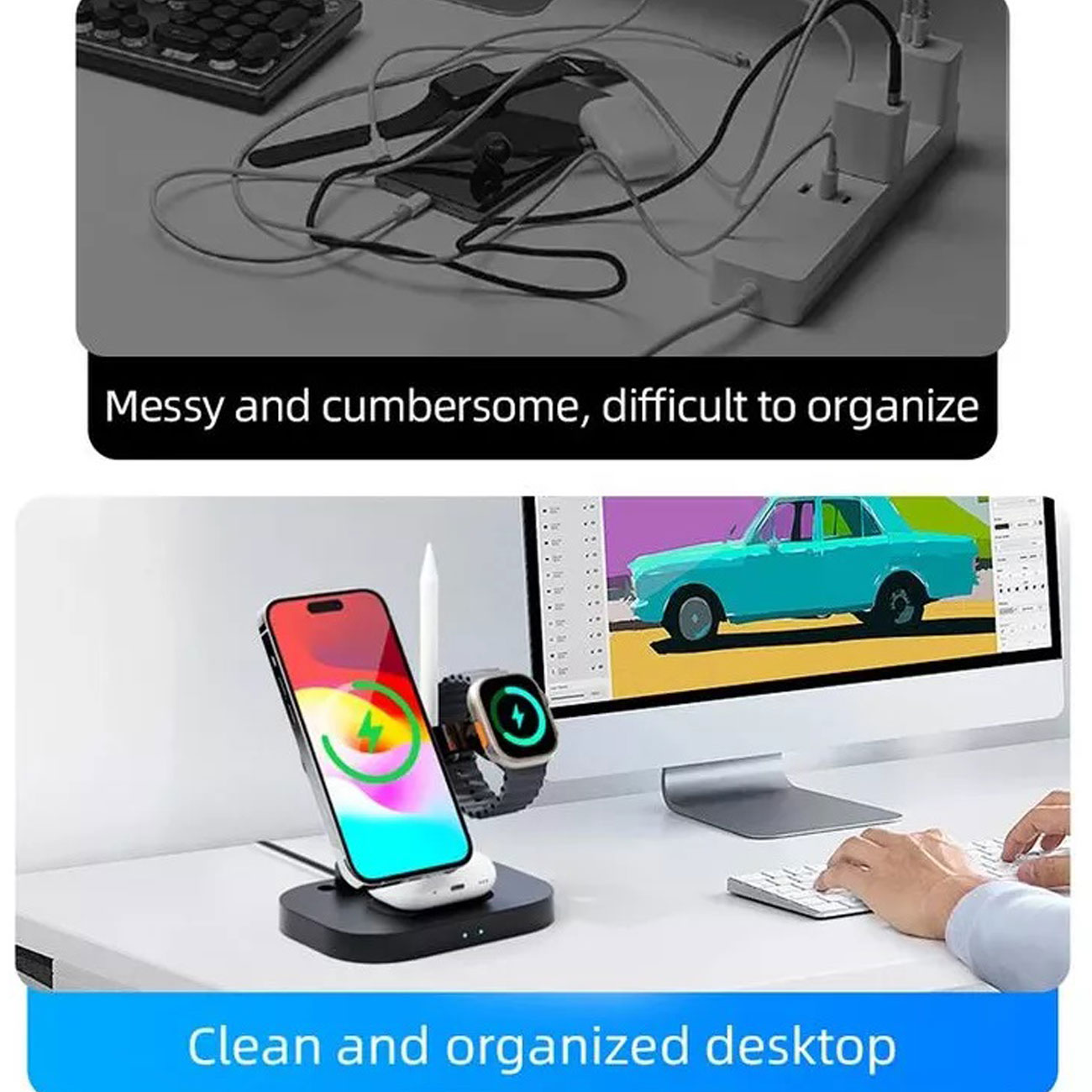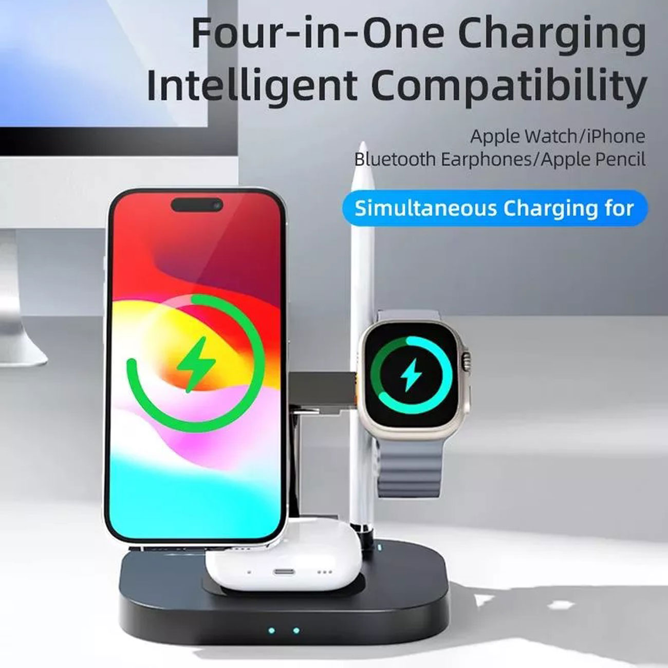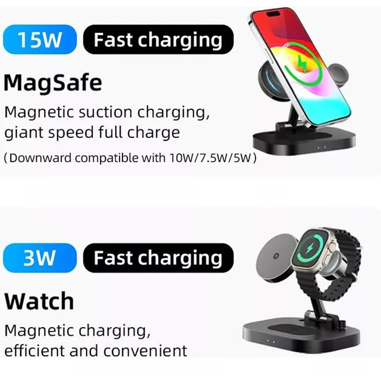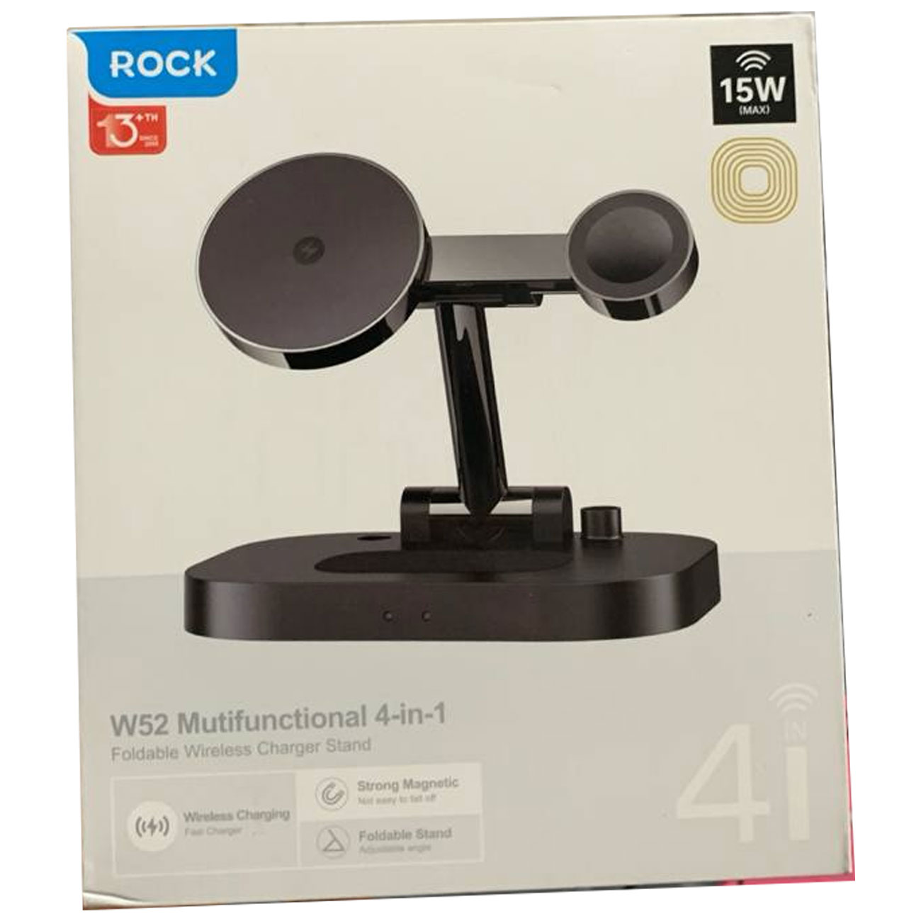 شارژر وایرلس فست شارژ چهار کاره تاشو 15 وات گوشی، اپل واچ، ایرپاد و قلم لمسی راک W52