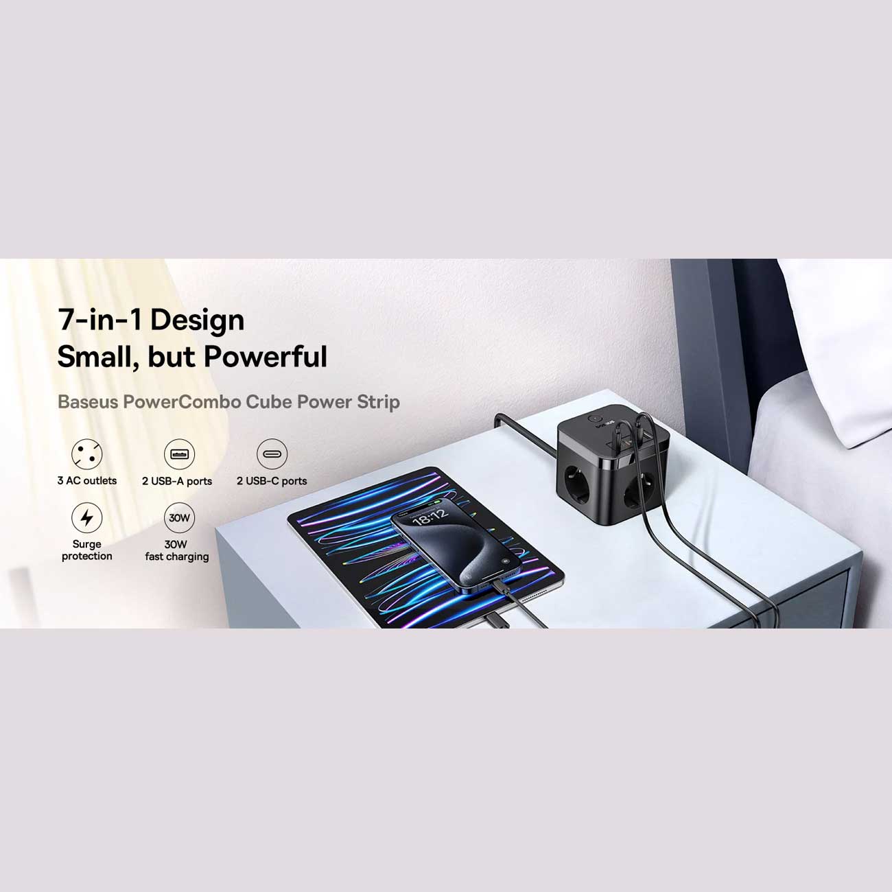 Baseus PowerCombo Cube 7-Ports Power Strip 30W E00066400117-00