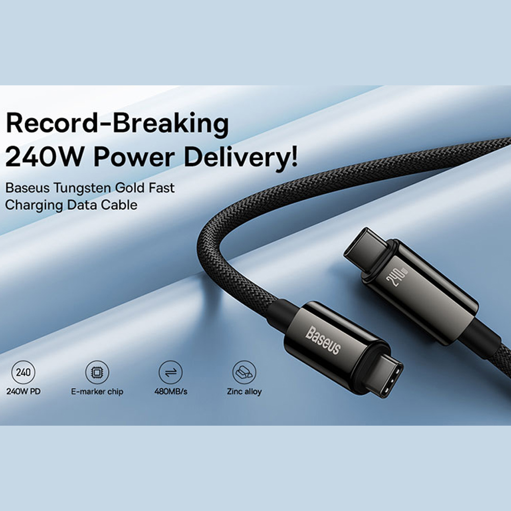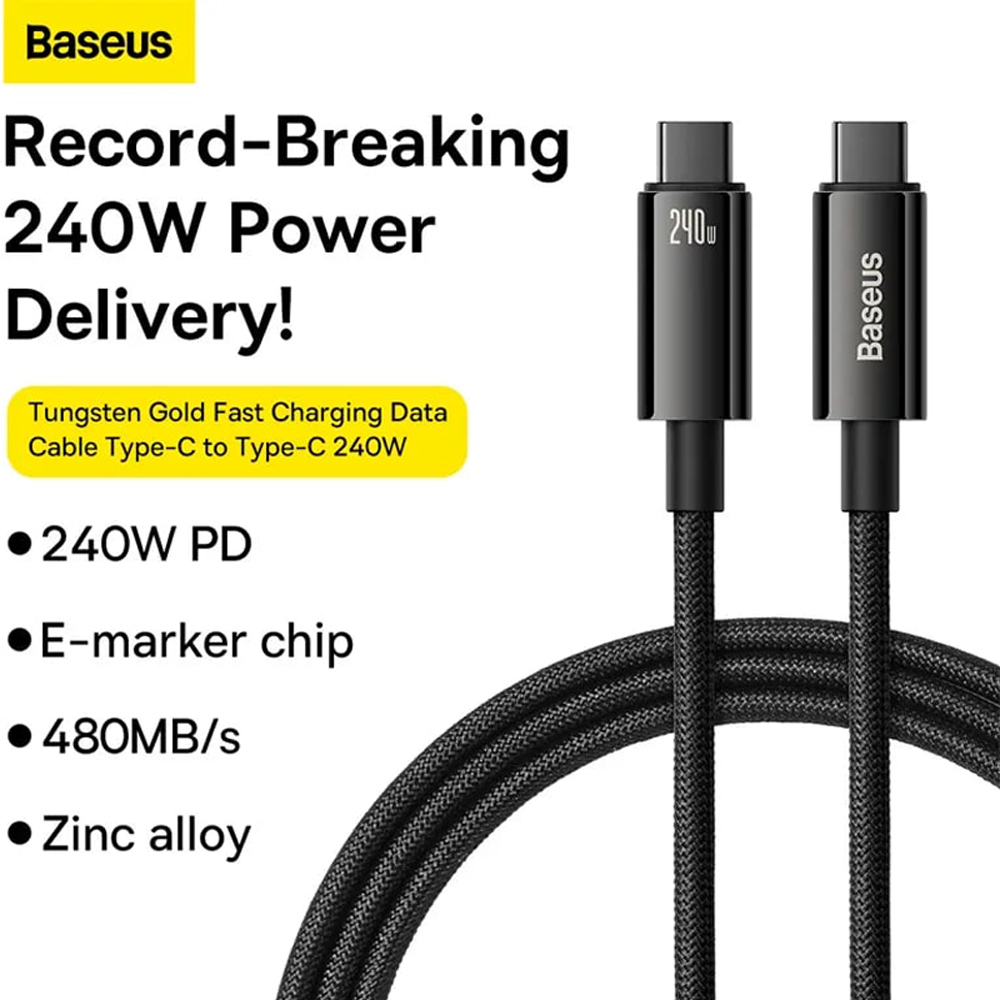 Baseus CB000038 Tungsten Gold 240W 1m USB-C to USB-C Cable (Black) CAWJ040001
