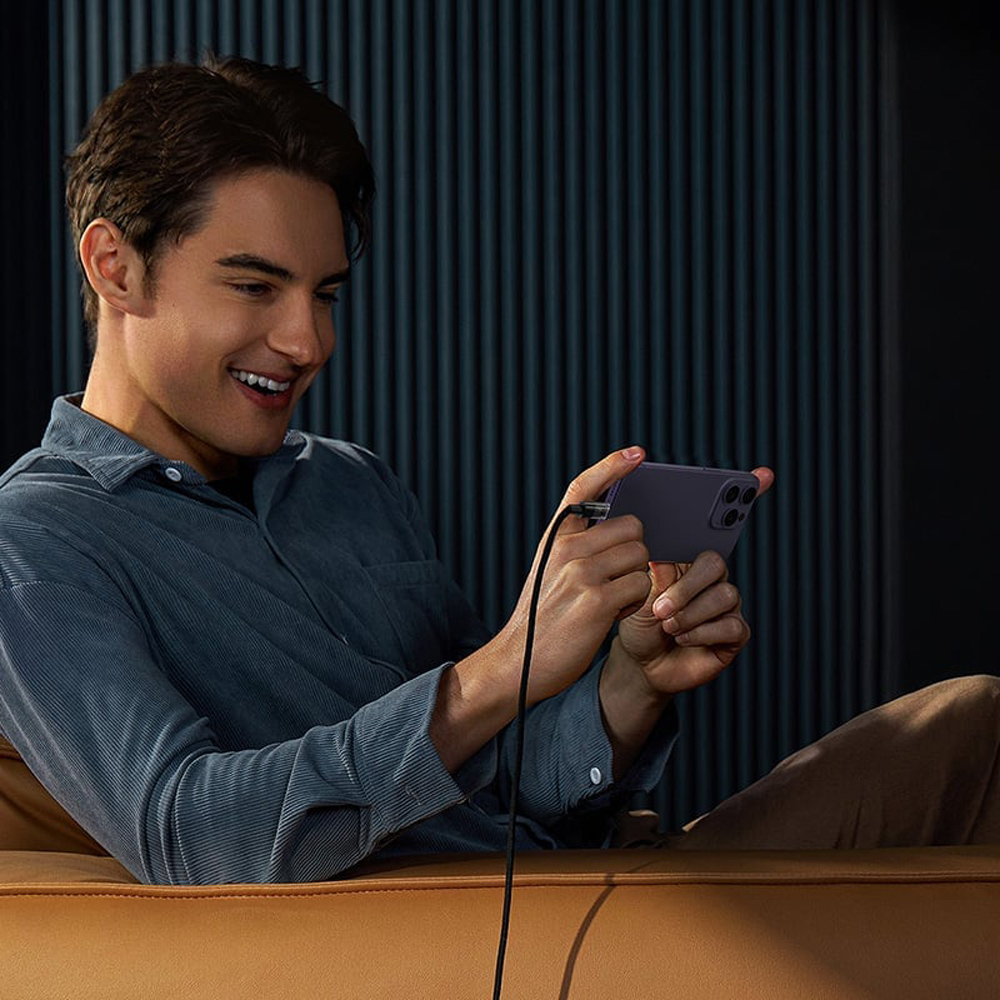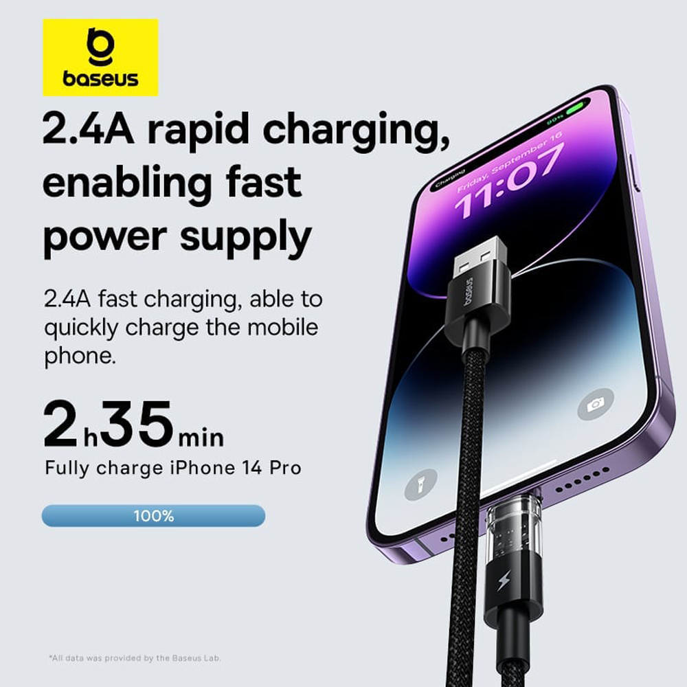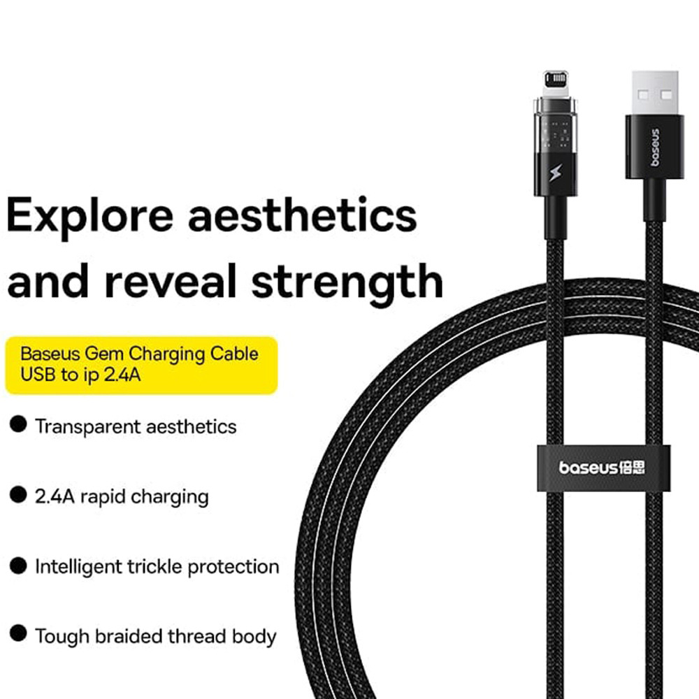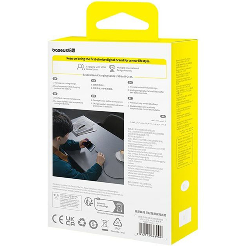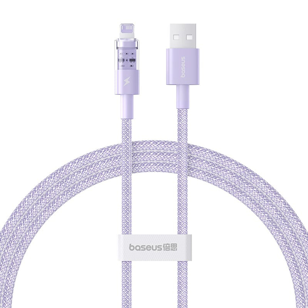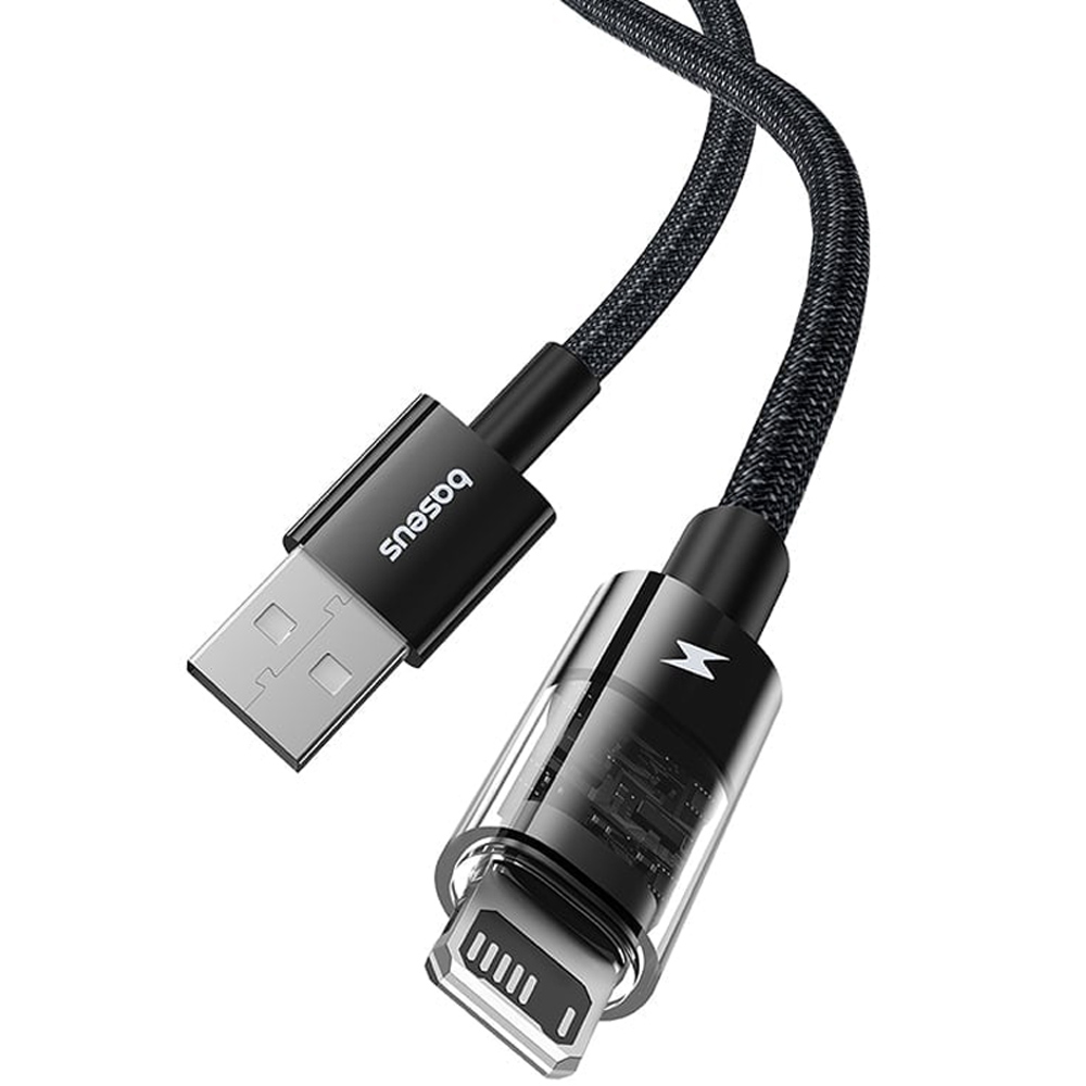 کابل فست شارژ USB به لایتنینگ 20 وات 2.4 آمپر یک متری طرح شفاف بیسوس CB000117