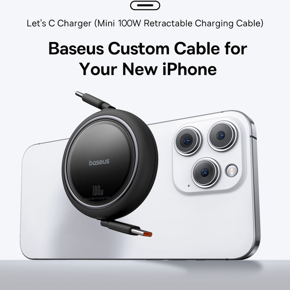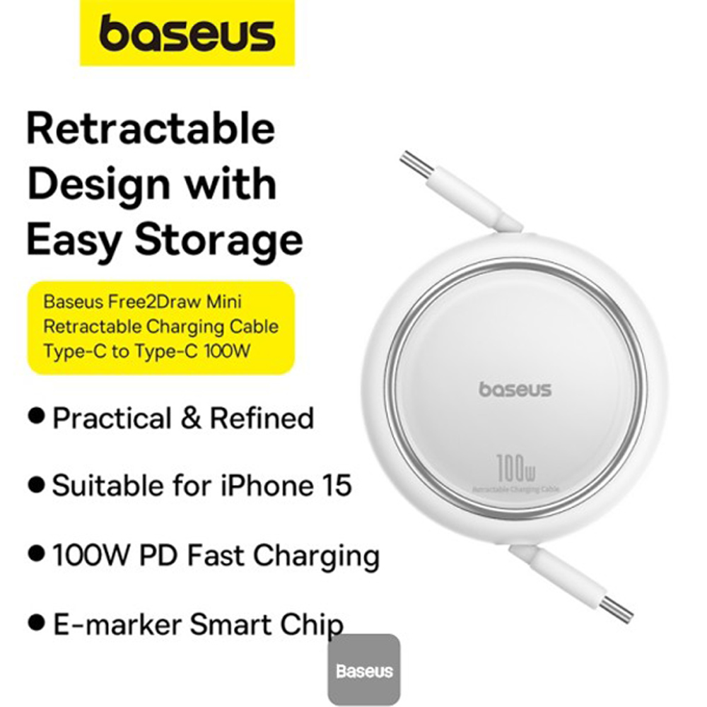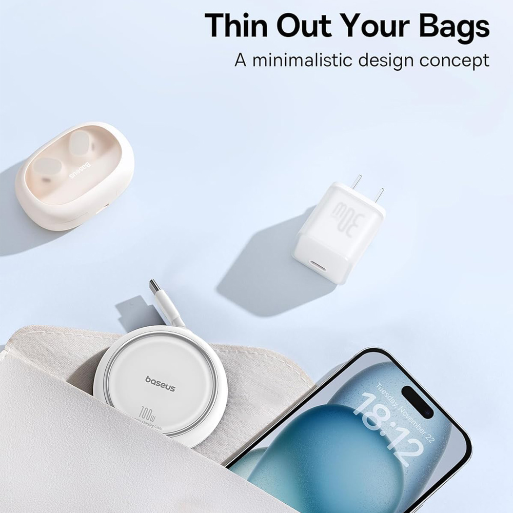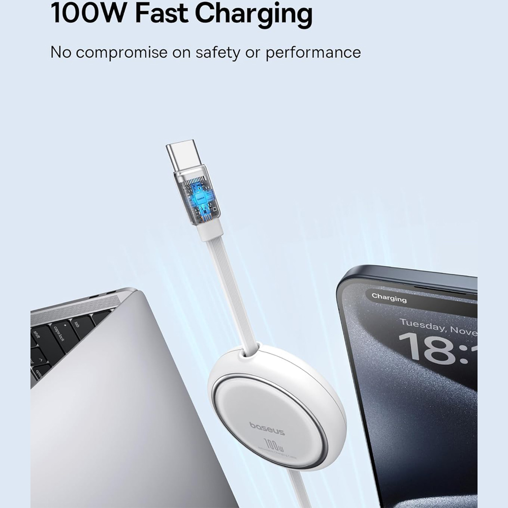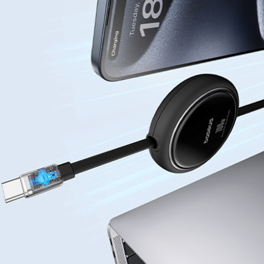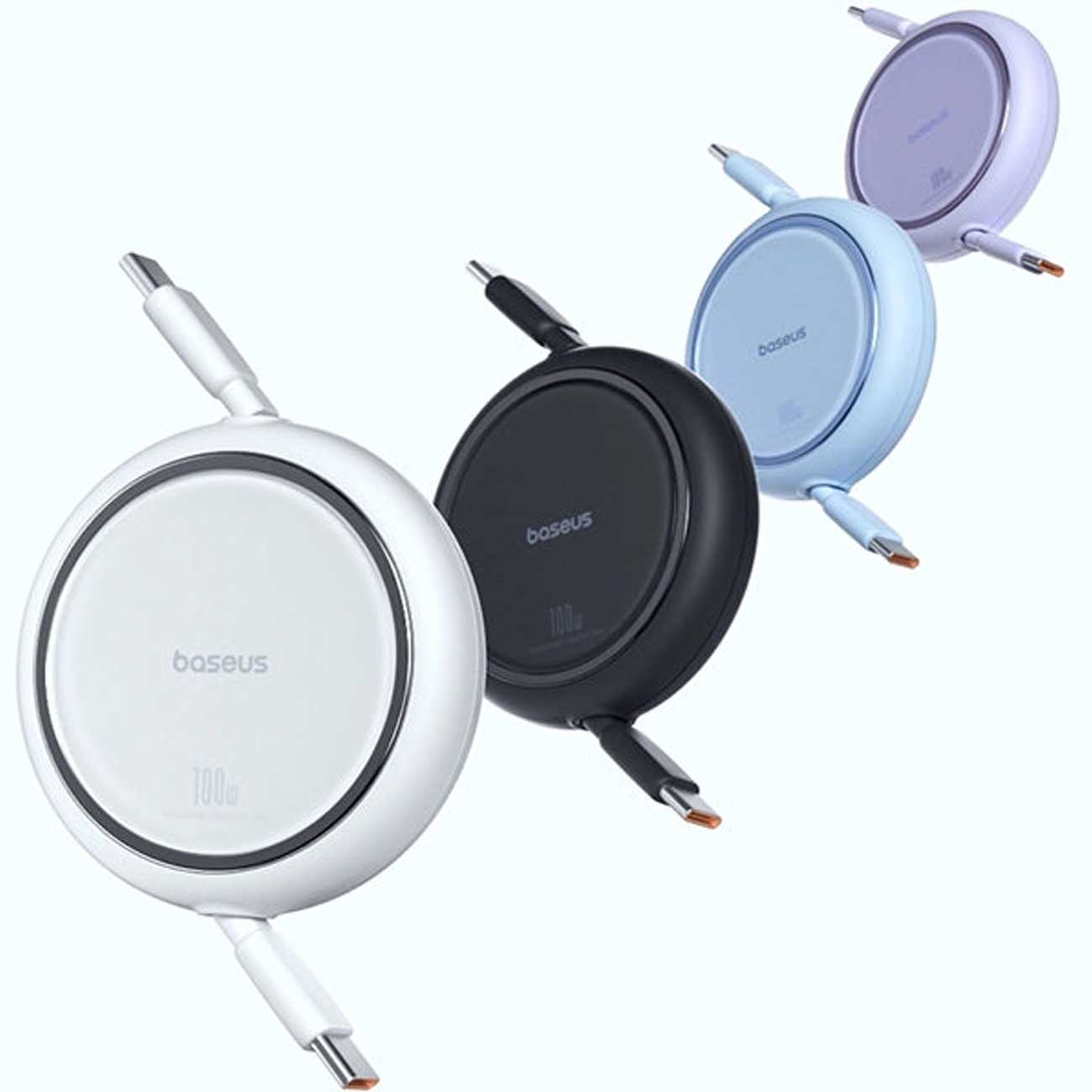 کابل شارژ دوسر تایپسی جمعشونده 100 وات یک متری بیسوس P10364500111 CB000062