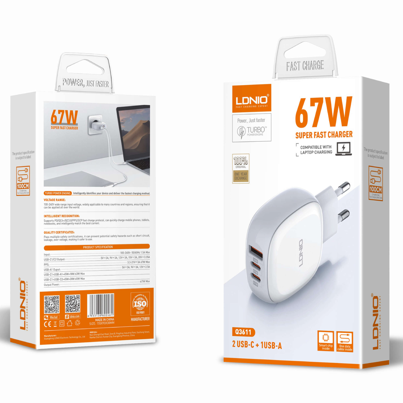 LDNIO Q3611 67W Dual Port PD&QC Fast Charger