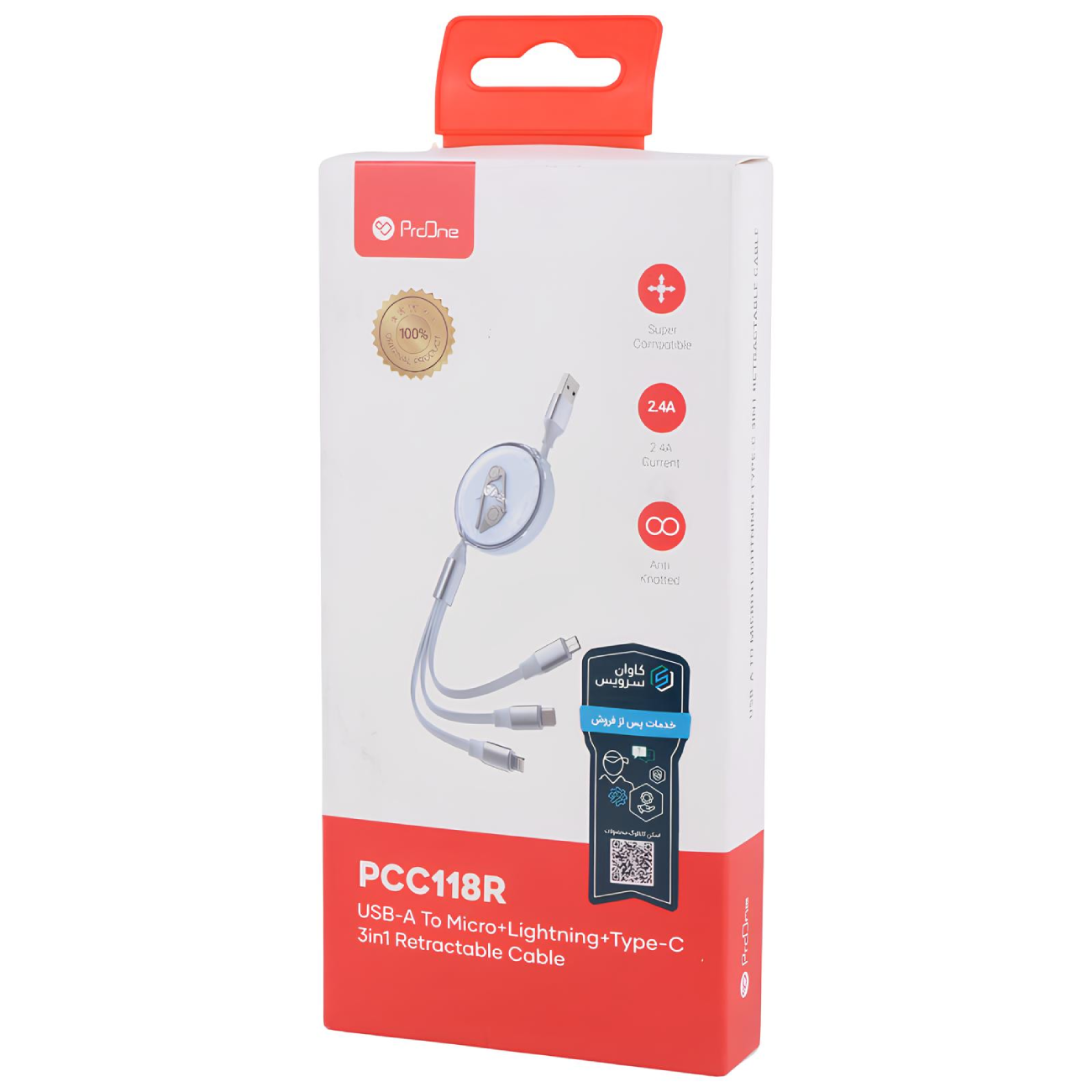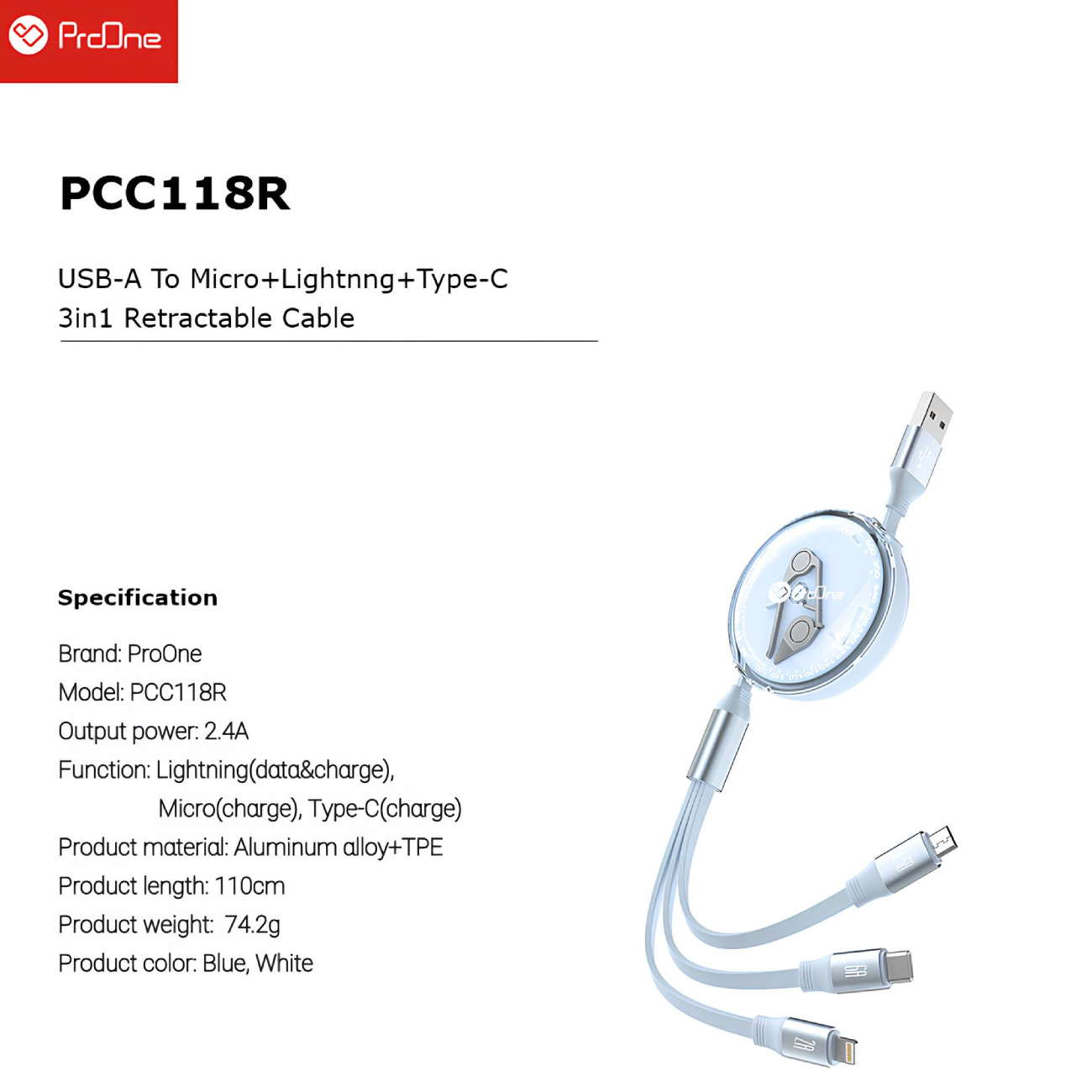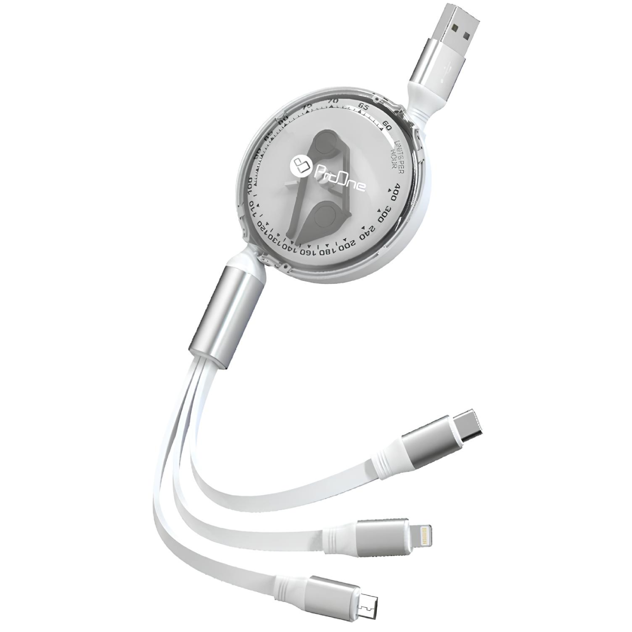 ProOne PCC118R USB-A To Micro+Lightnng+Type-C 3in1 Retractable Cable