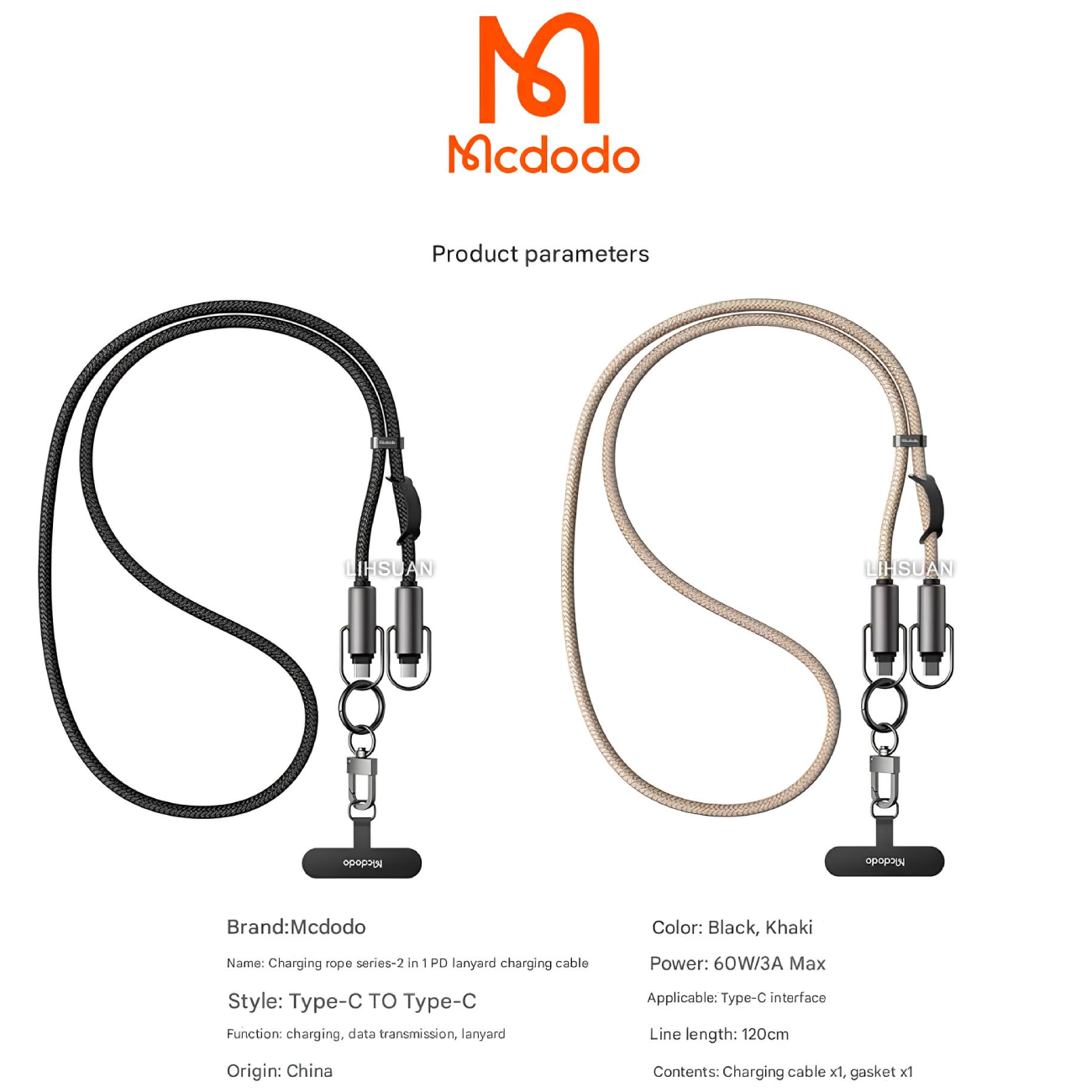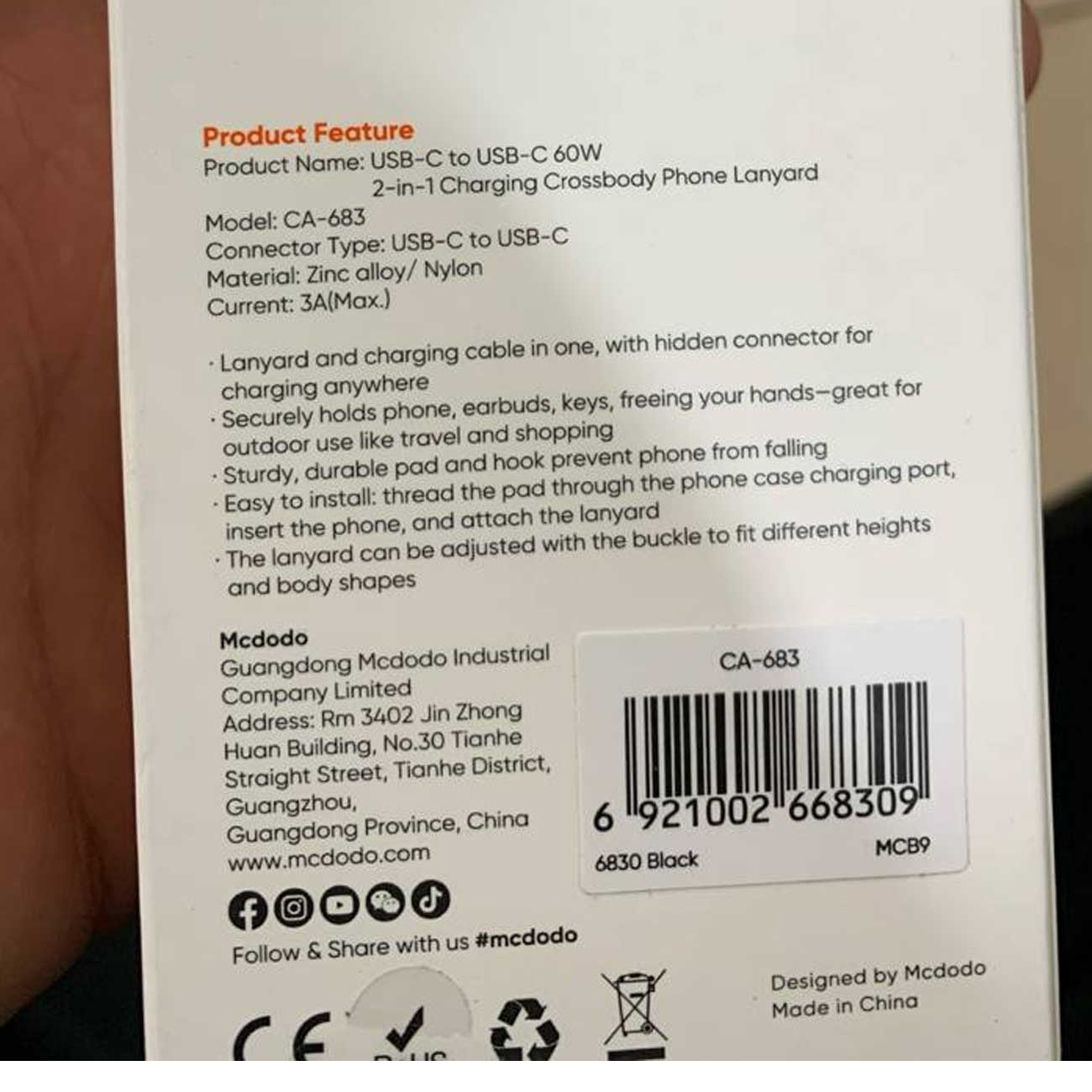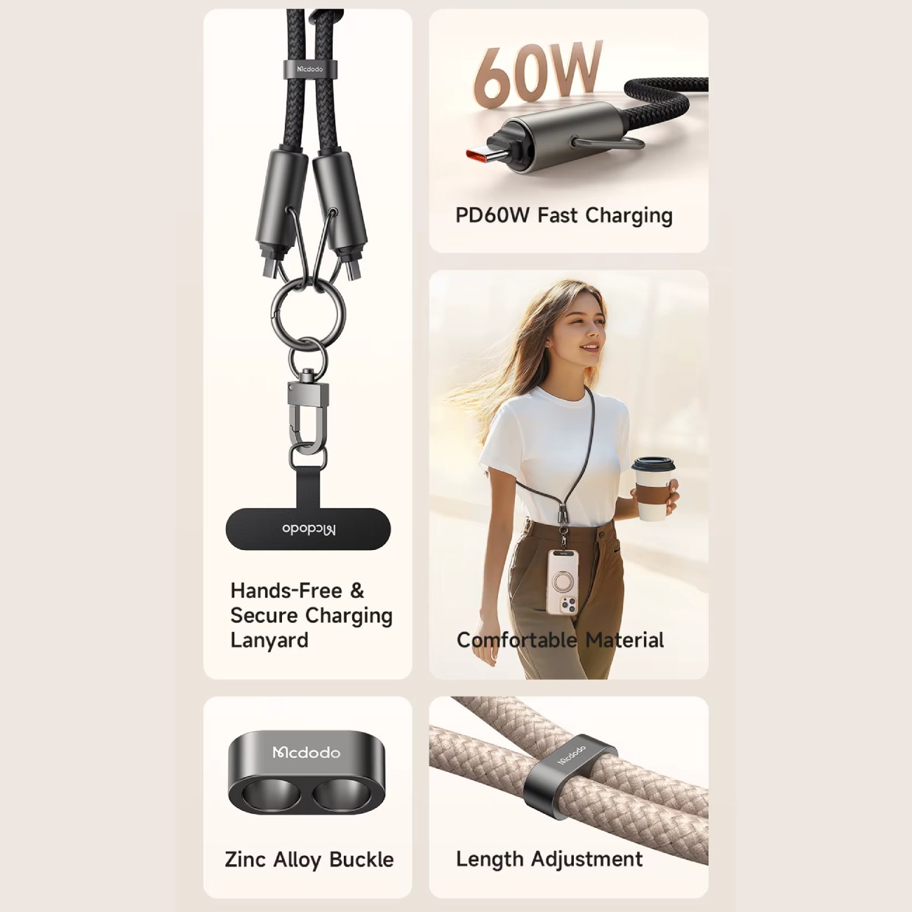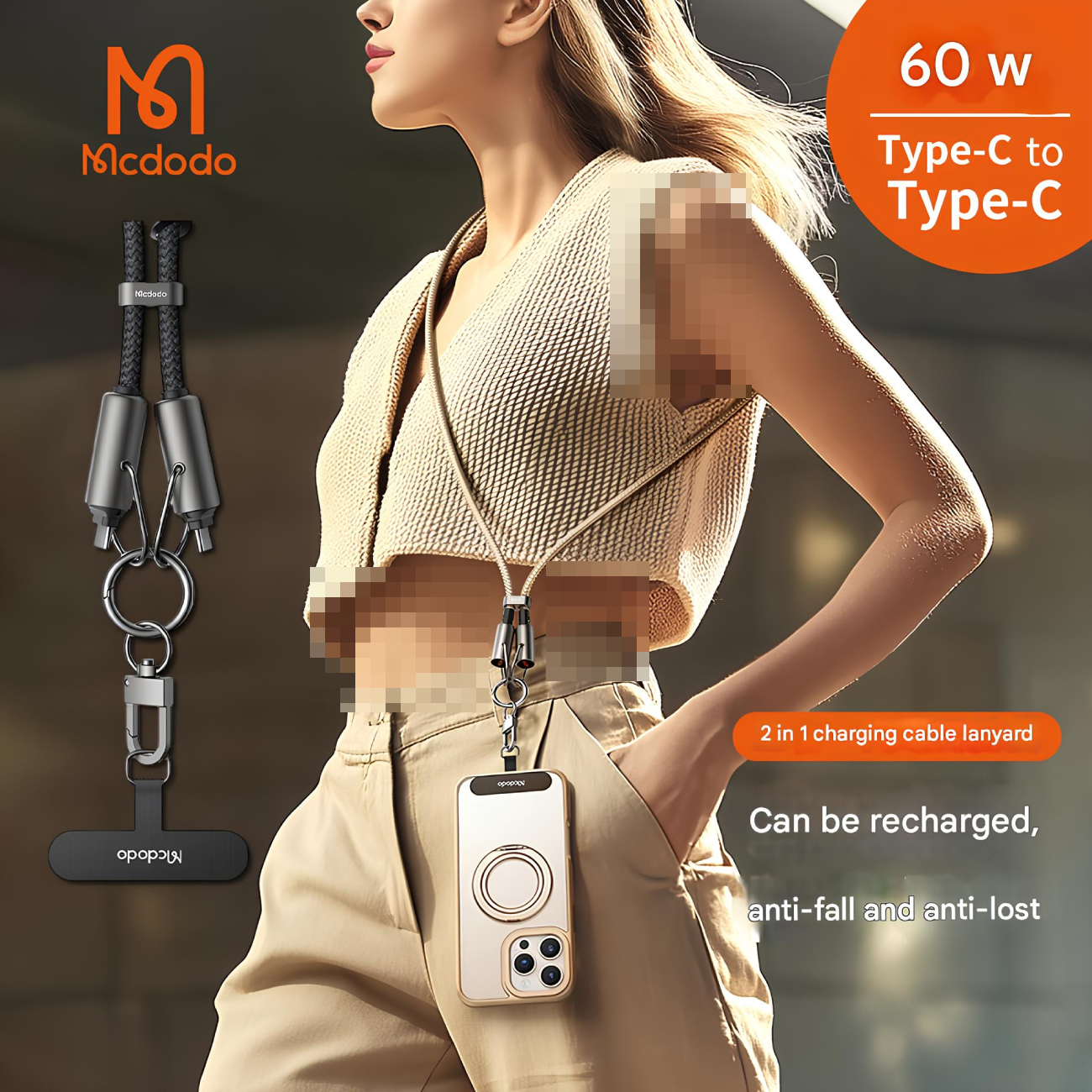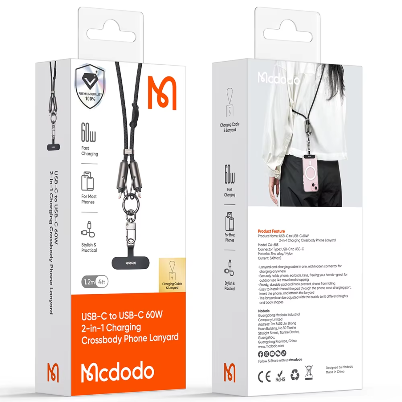 Mcdodo CA-683 USB-C to USB-C 60W 2-in-1 Charging Crossbody Phone Lanyard