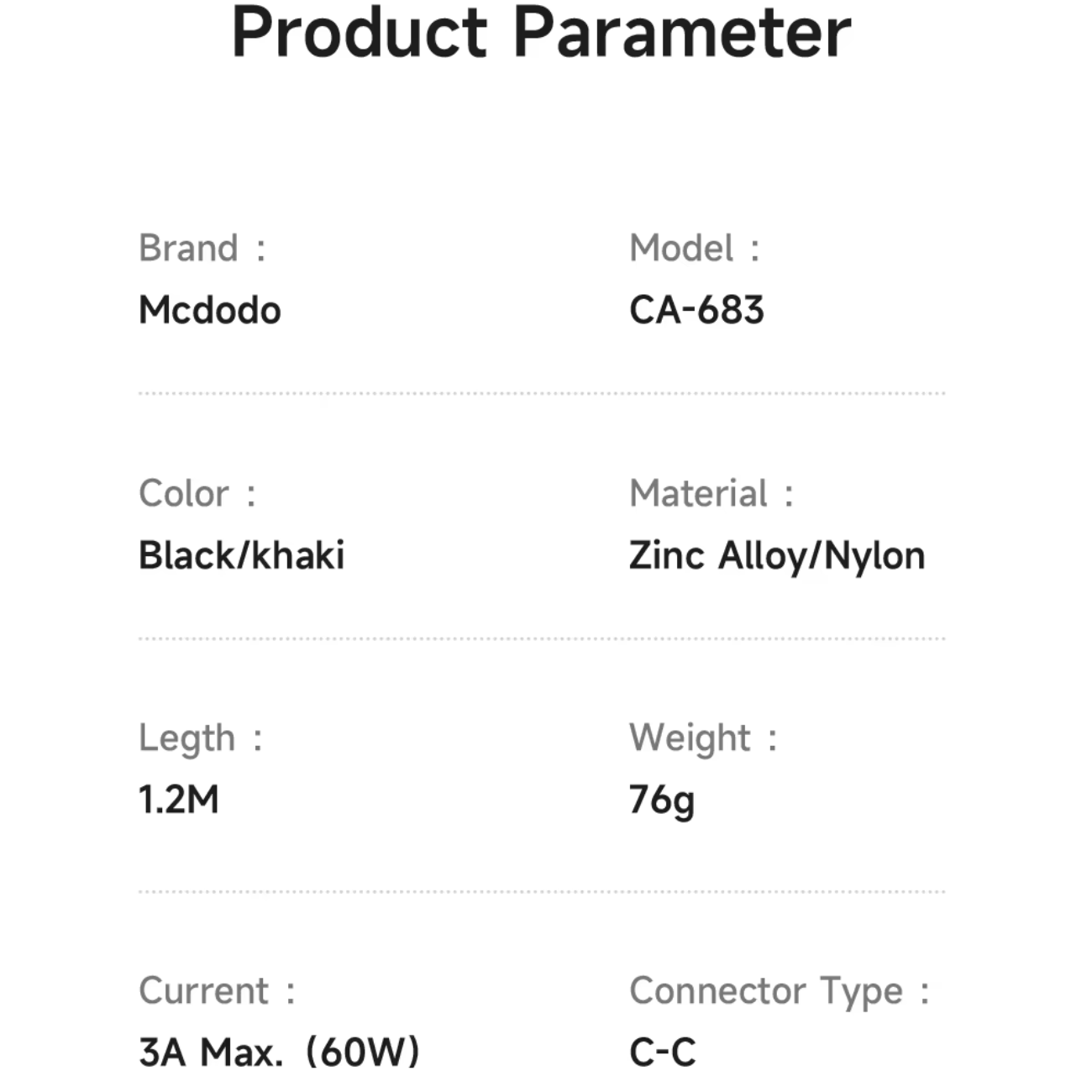 | سایر ویژگیها | - جنس: الیاف نایلون بافته شده+آلیاژ روی - مقاوم در برابر خمیدگی و استفاده طولانی مدت - مناسب برای شارژ و انتقال اطلاعات - حداکثر شدت جریا خروجی 3 آمپر |