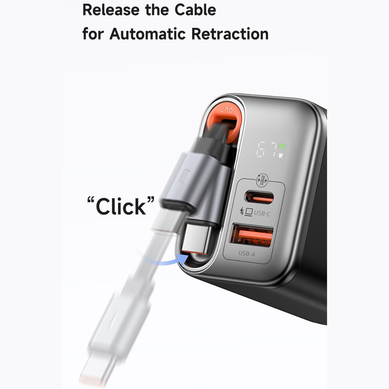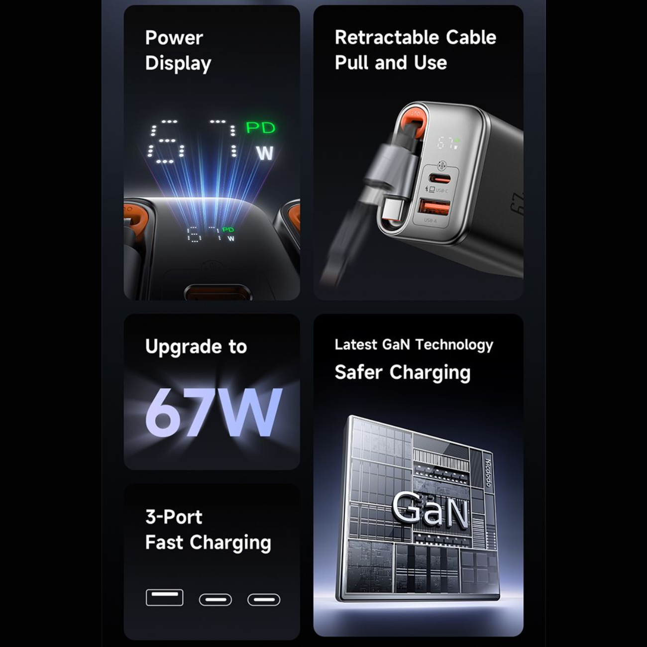 MCDODO CH-410 GaN FreeGo 67W Fast Charger with Built-in Retractable Type-C Cable