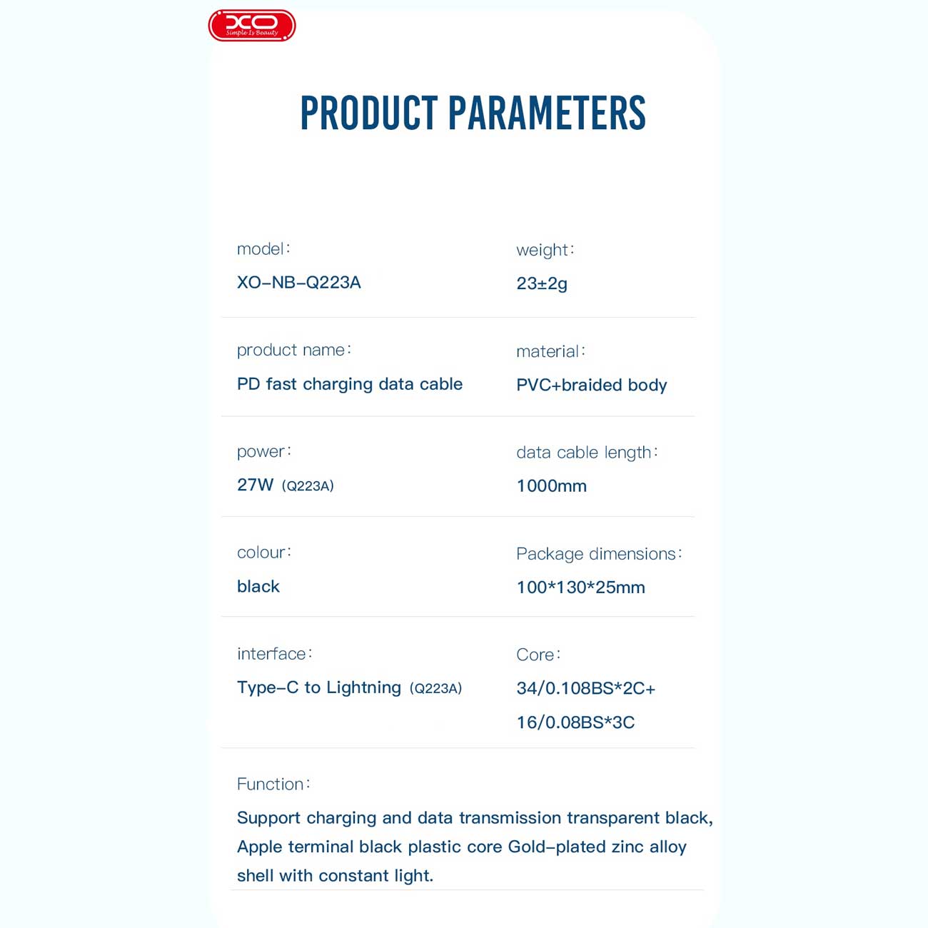 XO NB-Q223A USB Type-C to Lightning 1m Cable