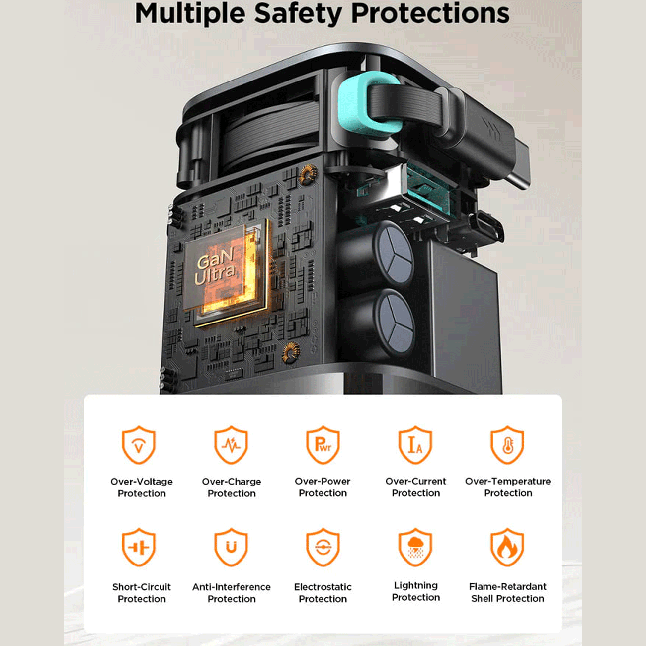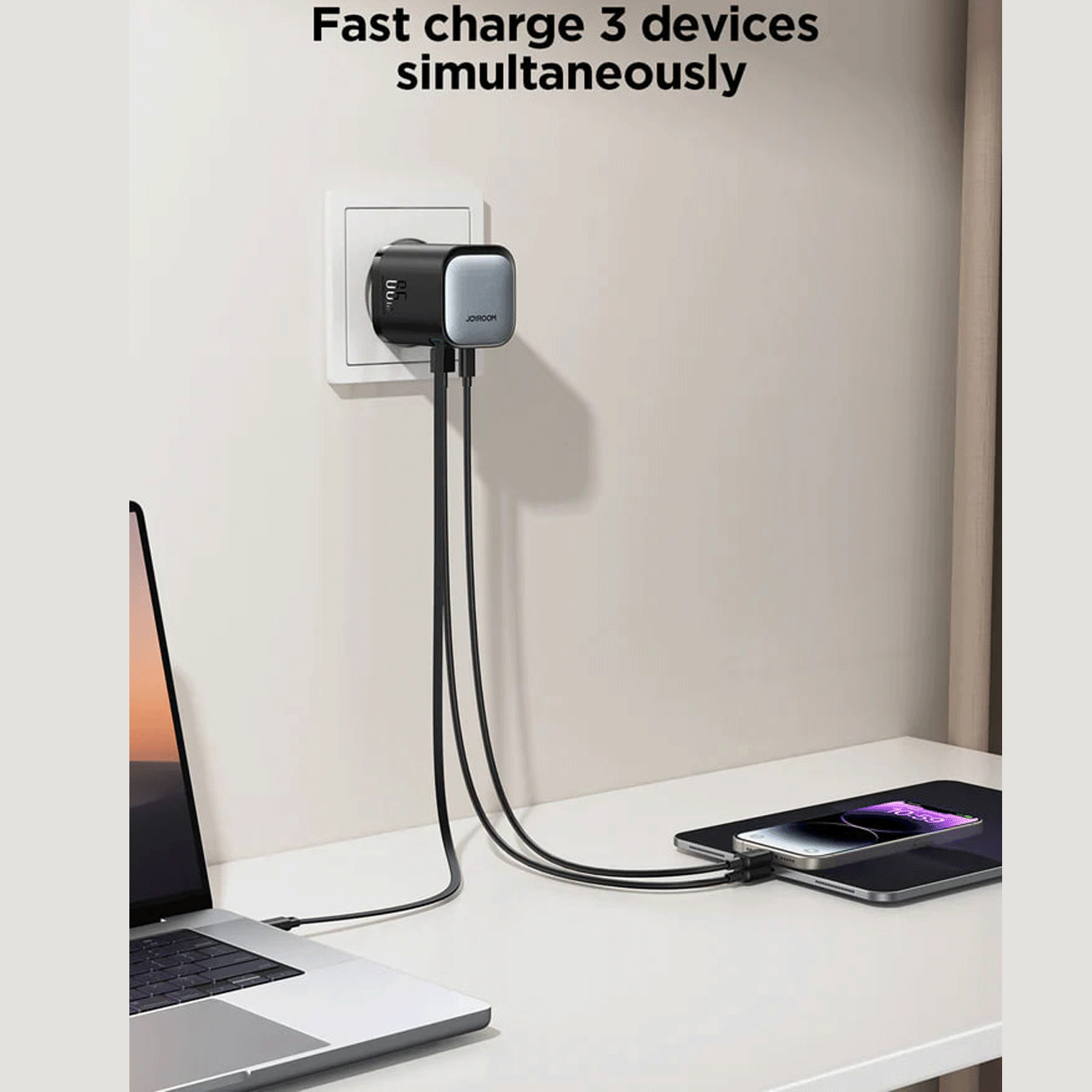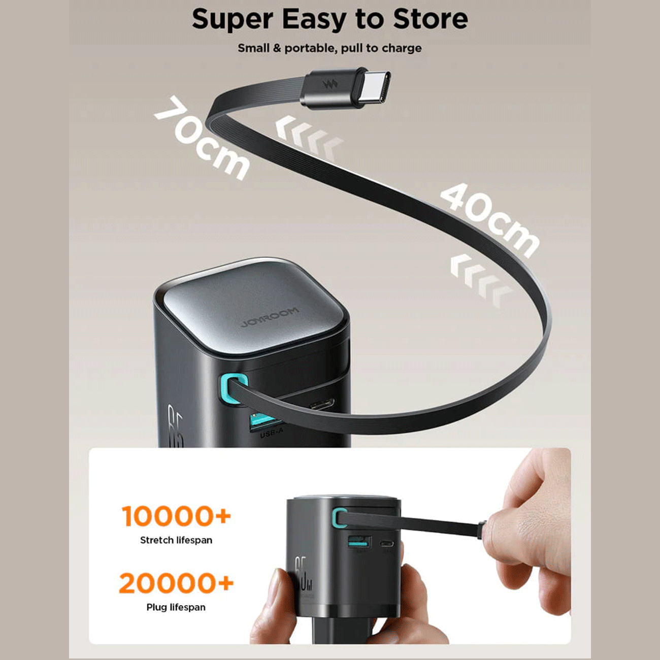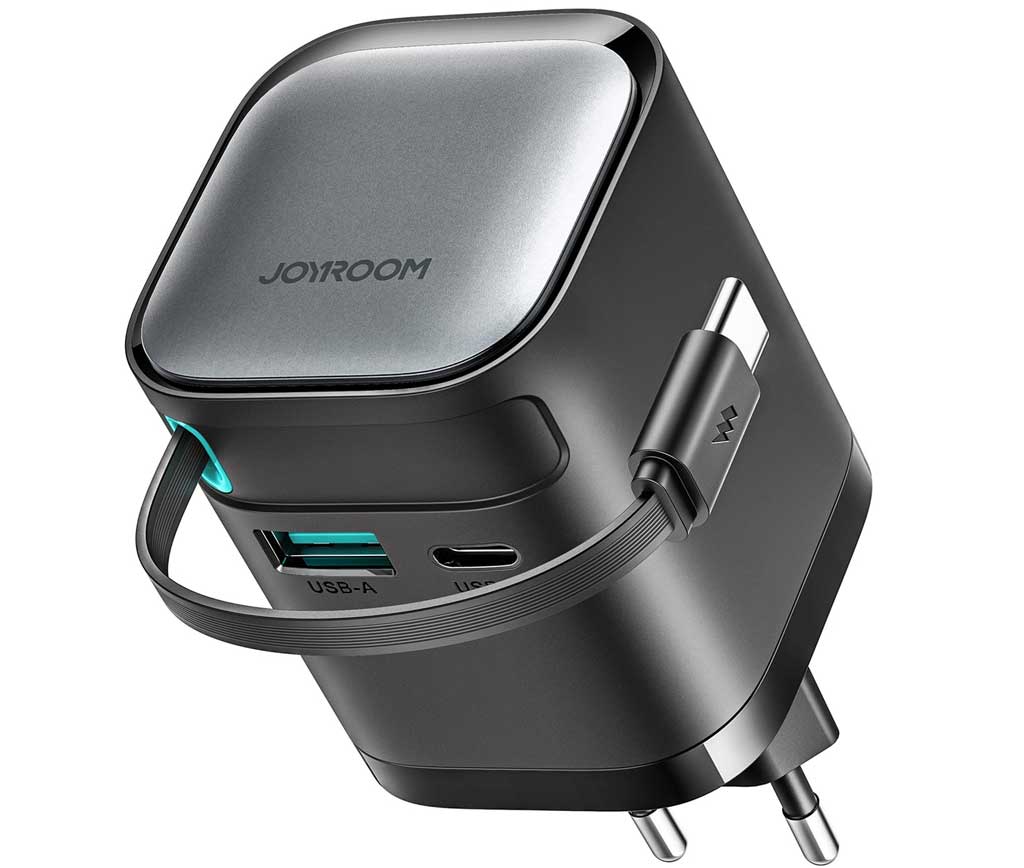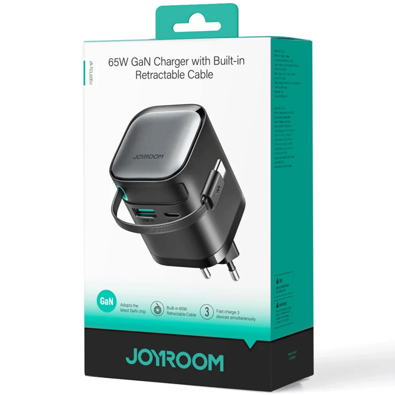 JOYROOM JR-TCL02EU GaN 65W Dual Port Charger with Retractable Cable